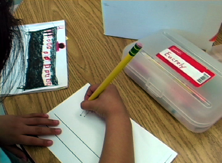 In this conference, I approach the table to talk to Martha, but since Eucrely had already picked a star to put on her story, I begin talking to her. First I complement Eucrely on her story and then I ask her why she picked her book. For conferences at this stage of the writing process, I focus on checking to see whether students have applied the mini-lesson or not.